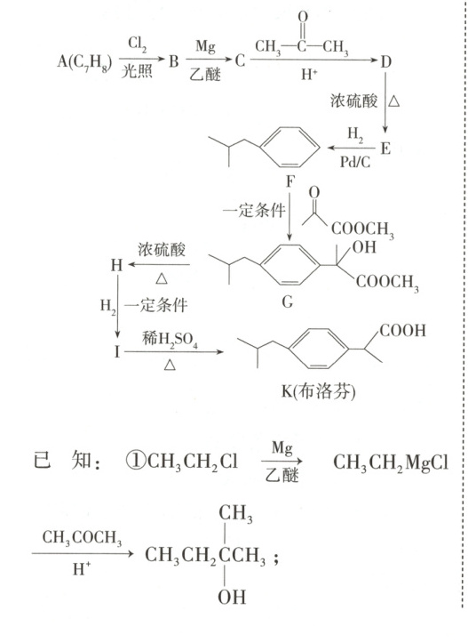 5.布洛芬具有降温和抑制肺部炎症的双重作用。一种制备布洛芬的路线如下: