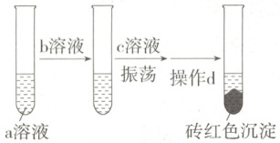 5.B 配制氢氧化铜悬浊液时先在试管中加入NaOH溶液,再向试管中滴加适量硫酸铜溶液(NaOH过量),得到氢氧化铜悬浊液,因此a是NaOH,A正确;配制过程中沉淀不会消失,B错误;含有醛基的物质与新制氢氧化铜悬浊液在加热条件下反应生成砖红色沉淀(Cu₂O),因此c含醛基,操作d是加热,C、D正确。
