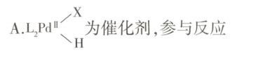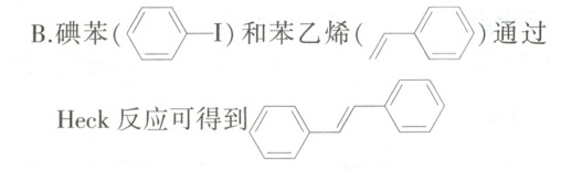 8.A 该反应原理为芳基或乙烯基卤代物(X为卤素原子)与活性烯烃反应,结合图示可知L₂Pd⁰为反应起始存在、最终又生成的物质,则L₂Pd⁰为催化剂,故A错误;碘苯和苯乙烯发生Heck反应,碘苯中的苯基取代苯乙烯中双键碳原子上的氢原子,得到