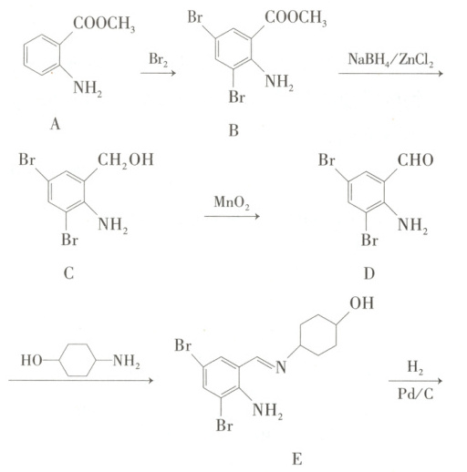 。(3)若 E 中有 D 残留,则产物 F 中可能含有杂质$C_7H_7NOBr_2$,其结构简式为