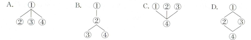 4.A 篇章结构题。第一段引入话题,第二段讲父亲,第三段讲安亚航的童年梦想,第四段讲安亚航成为飞行员后的工作情况。整体结构是总分式,第一段总起,后面分述,选项A的结构图符合。