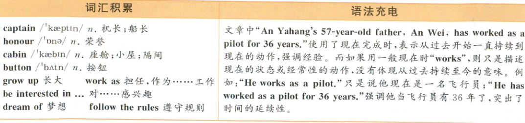 ③When he was a child, An Yahang hoped to be a pilot like his father. He was interested in planes and the blue sky. He dreamed of flying in the sky one day. Now his dream comes true.