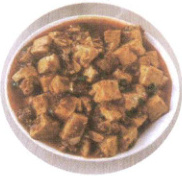 Ingredients: 300 g tofu, 100 g mince meat, a little pepper and 1 spoon of broad bean paste.