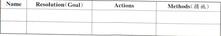 二、新考法 应用实践 在下表中补充你的年度行动计划表,并调研你的一位同学或家人。