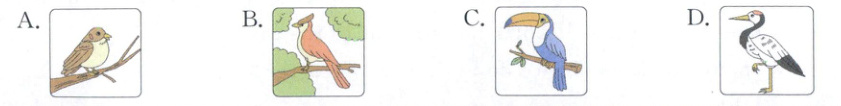blue jays, 3 herons and 2 toucans.二、新考法 图片理解 根据图表记录的鸟类特点,选择 heron 的正确图片。