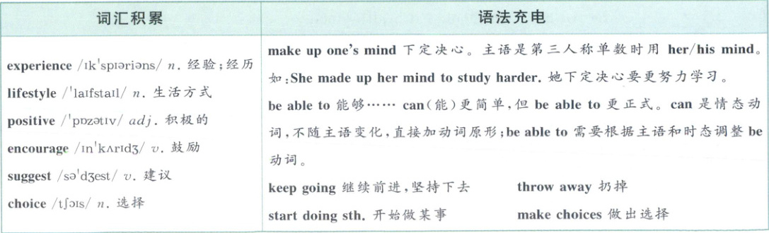2.mind 句意:所以我下定决心要改变我的生活方式。根据“So I made up my ...”可知,此处使用固定搭配make up one’s mind“下定决心”,由my可知mind用单数,故填mind。
