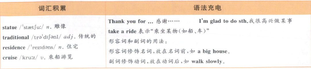 二、新考法 应用实践 小导游体验卡。设计一个30秒的英语演讲,向外国游客介绍一个景点。