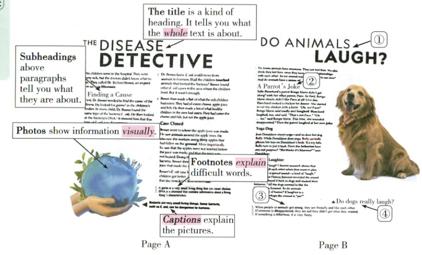 )1. According to Page A, what can a title do?A. It can explain pictures.