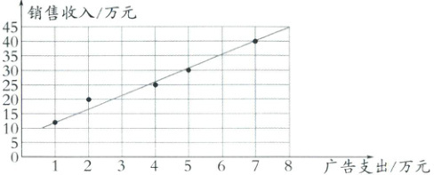 由趋势图可知,当广告支出为8万元时,销售收入约为45万元.