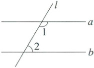 例4 如图,直线 $a$,$b$ 被直线 $l$ 所截,$a // b$,若 $\angle 1 = 120°$,则 $\angle 2$ 的度数是 (