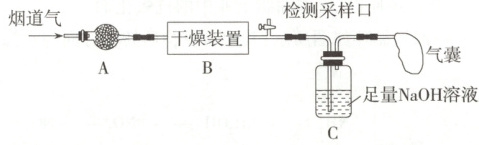 (2)气体在被装置 C 中的$NaOH$溶液吸收前,需在检测采样口测定气体中 NO 和$NO_2$的含量。为确保 NO 和$NO_2$气体能够被$NaOH$溶液完全吸收,则需控制进入装置 C 的 NO 和$NO_2$的物质的量之比(填字母)。