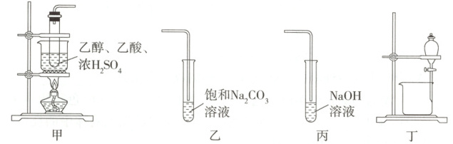 C.装置丙中采用 $ NaOH$ 溶液除去乙酸乙酯中的乙酸和乙醇