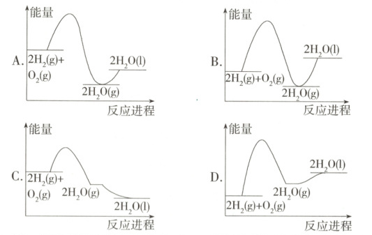 7.C 氢气在氧气中燃烧生成气态水的反应为放热反应,反应物的总能量大于生成物的总能量,气态水转化为液态水的过程放热,气态水的能量高于等质量的液态水,选C。