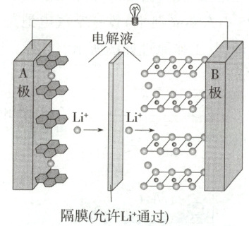 )A.放电时, A 极电极反应式为$\mathrm{Li_xC_6−xe^− \xlongequal{ } 6C + xLi^+}$