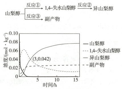 C.$0\sim3\ \mathrm{h}$平均速率$v$(异山梨醇)$=0.014\ \mathrm{mol·\ kg^{-1}· h^{-1}}$