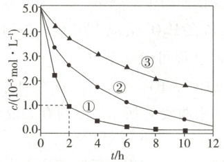 3. (2024安徽,12)室温下,为探究纳米铁去除水样中${SeO^{2-}_{4}}$的影响因素,测得不同条件下${SeO^{2-}_{4}}$浓度随时间变化关系如图$^{①}$。