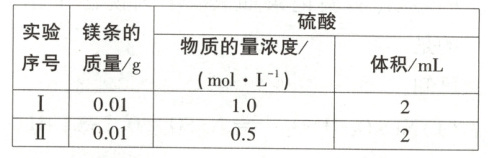 。(2) 为更精确地研究浓度对反应速率的影响,小组同学利用压强传感器等数字化实验设备,探究镁与不同浓度硫酸的反应速率,两组实验所用药品如下表: