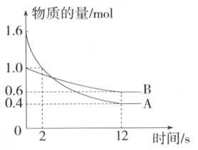 12s时容器内气体的总物质的量与起始时容器内气体的总物质的量之比为$\frac{1.8 mol}{2.6 mol}=\frac{9}{13}$,D正确。