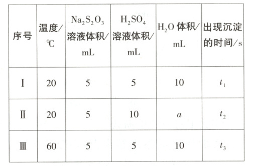 4.C 研究$ H_{2} SO_{4}$浓度对该反应速率的影响,应该保持溶液总体积相等,则$a=5+5+10-5-10=5$,故A正确;实验Ⅰ、Ⅲ温度不同,其他条件相同,$t_{1}>t_{3}$,说明升高温度能加快该反应的反应速率,故B正确;由于硫代硫酸钠和稀硫酸混合就反应,所以进行实验Ⅰ、Ⅱ时,$ Na_{2} S_{2} O_{3}$溶液和$ H_{2} SO_{4}$溶液不能挨着放,故C错误;二氧化硫易溶于水生成亚硫酸,因此用出现沉淀所需时间比较反应速率比用产生气泡所需时间来比较反应速率更合理,故D正确。