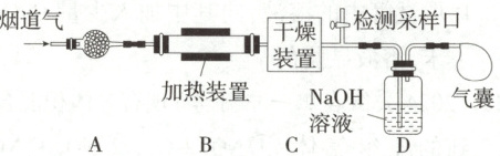 (1)装置 A 中放置的无碱玻璃纤维可除去粉尘;为防止测得的氮氧化物总质量偏大,烟道气中的水蒸气必须除去。碱石灰能吸收$ NO_2$,$ CuSO_4 · 5 H_2 O$不能用作干燥剂,应选用浓硫酸,b 正确。