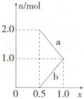 4.(2025河北保定段考)将一定量的$\mathrm{NO}$、$\mathrm{NO_2}$混合气体通入足量的$\mathrm{Na_2CO_3}$溶液中被完全吸收,溶液中生成的$\mathrm{NO_3^-}$、$\mathrm{NO_2^-}$两种离子的物质的量与混合气体中$\mathrm{NO_2}$的物质的量分数$x[x=\frac{n(\mathrm{NO_2})}{n(\mathrm{NO})+n(\mathrm{NO_2})}]$变化关系如图所示。