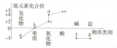 4.D 由题图可知,a为NH₃,b为N₂,c为NO,d为NO₂,e为HNO₃,f为NH₃·H₂O,g为铵盐。a为NH₃,液氨可以用作制冷剂,g为铵盐,是农业上常用的铵态化肥,A正确;N₂→NH₃、N₂→NO均为游离态的氮转化为化合态的氮,都属于氮的固定,B正确;工业上由N₂制备硝酸,第一步N₂在高温高压、催化剂存在条件下与H₂反应生成NH₃,第二步NH₃在催化剂、加热条件下与O₂反应生成NO,第三步NO与氧气反应生成NO₂,第四步NO₂与水反应生成HNO₃,C正确;足量稀HNO₃与Cu反应生成NO气体,不能生成NO₂,D错误。