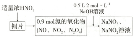3. (2025 江苏扬州月考)$Cu$与浓硝酸反应生成氮的氧化物,这些氧化物恰好溶解在$NaOH$溶液中得到${NaNO_{3}}$和${NaNO_{2}}$的混合溶液,反应过程及有关数据如图所示:
