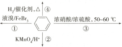 D.反应④能发生,从而证明苯分子中存在单、双键交替结构
