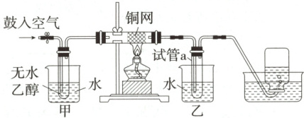 装置分析:实验时,不断向甲装置中鼓入空气,甲烧杯中应盛热水,使无水乙醇变成气态,乙醇蒸气与空气的混合气体在铜网的催化作用下发生反应:
