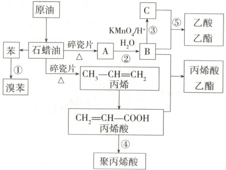 (填操作名称)得到石蜡油。(2)丙烯酸中含氧官能团的名称为