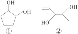 9.C 只有②能与$\mathrm{Br_2}$发生加成反应而使$\mathrm{Br_2}$的$\mathrm{CCl_4}$溶液褪色,A正确;①和②分子中所有原子都不可能处于同一平面,B错误;①和②的1个分子中均含有两个羟基,物质的量相同时,与足量的钠反应产生$\mathrm{H_2}$的物质的量相等,C正确;只有②能发生加聚反应,D正确。