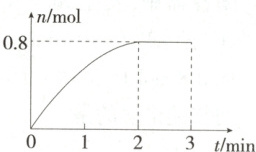 2 min 末正、逆反应速率相等,但反应仍在进行,故反应速率不为 0,A 错误;平衡时气体总物质的量为 0.8 mol+1.6 mol+1.6 mol = 4 mol,气体总物质的量与起始相同,故平衡时体系的压强与开始时体系的压强之比为 1:1,B 正确;由分析可知 A 的转化率为$\frac{1.2}{2} × 100\% = 60\%,$B 的转化率为$\frac{0.4}{2} × 100\% = 20\%,$A 和 B 的转化率之比为 3:1,C 错误;D 为固体,不用其单位时间内浓度的变化量来表示反应速率,D 错误。
