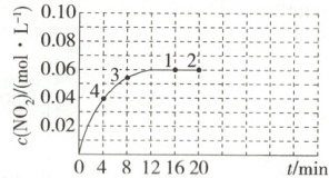 Ⅱ. ${NO_{2}}$(红棕色)和${N_{2}O_{4}}$(无色)之间可发生反应:${N_{2}O_{4}({g})⇌ 2NO_{2}({g})}$。在一定温度下,将0.08 mol ${N_{2}O_{4}}$气体充入容积为2 L的密闭容器中,容器中$c({NO_{2}})$随时间变化的曲线如图所示。