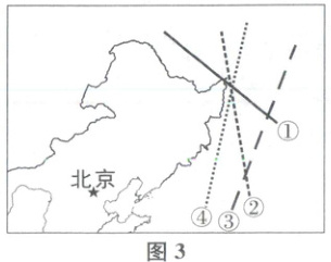 (2025 连云港月考)图 3 为“2023 年二分二至日及 2 月初晨线位置示意图”,图 4 为“二十四节气图”。据此完成 4~6 题。