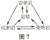 (2)他们要想回到“岩浆之家”,首先要经历固结成岩作用,从碎屑物变成沉积岩;然后又要随着地壳运动,在一定温度和压力条件下,发生变质作用,形成变质岩;最后再经历重熔再生作用,就可以成为岩浆,回到自己的家。