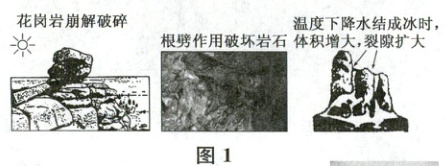 (1) 结合材料一,分析什么是风化作用?图示风化作用主要受哪几种因素的影响?风化在外力作用过程中有何意义?