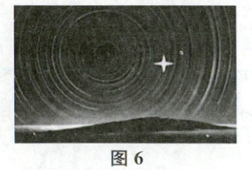 (2025连云港期中)图6为济南某中学地理研究性学习小组的同学在野外宿营时,用相机长时间曝光,拍摄得到的北极星附近星辰的“运动”轨迹的照片。读图完成3~4题。