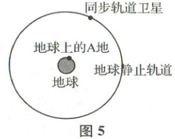 圆形地球同步轨道又称为地球静止轨道,在这样的轨道上运行的卫星将始终位于赤道某地的上空,相对于地球表面是静止的(见图5)。读图完成1~2题。