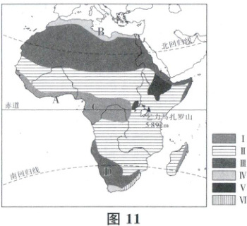 11. (2025 扬州期中)图 11 为“非洲气候类型分布图”。读图完成下列问题。