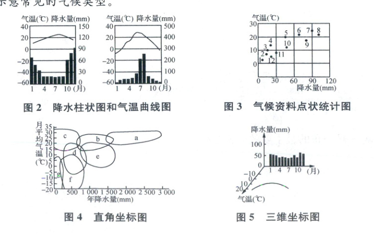 材料三 世界气候类型多种多样,气候类型统计图也多种多样,可以说是“乱花渐欲迷人眼”,下列图片示意常见的气候类型。