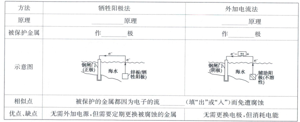 (3)电化学防护,利用原电池原理来保护金属,或用外加电流来保护金属。