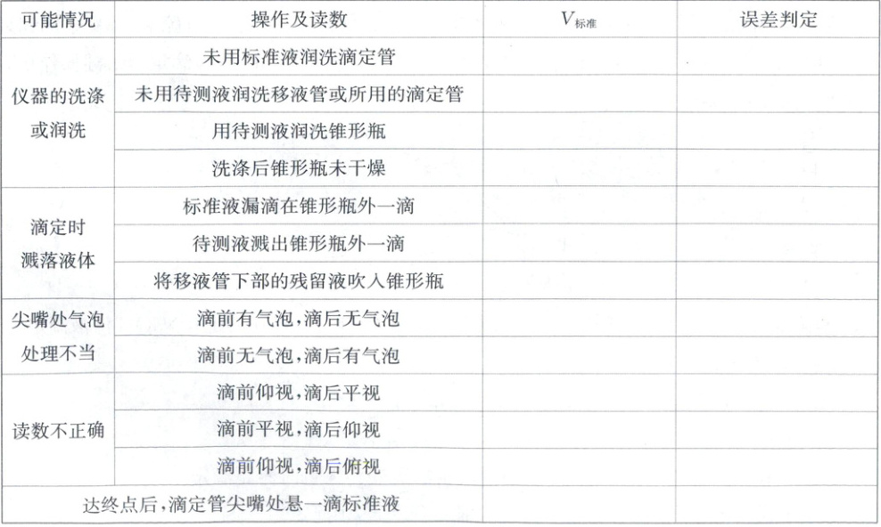 1. 分析误差一般根据$c(待测)=\frac{c(标准)· V(标准)}{V(待测)}$进行,若用标准液滴定待测液,$c_{标准}$、$V_{待测}$均为定值,$c_{待测}$的大小由什么决定?