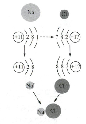 (2)在化学反应中,钠原子和氯原子通过电子的转移,分别形成稳定结构的钠离子和氯离子,再通过静电作用力形成氯化钠晶体。