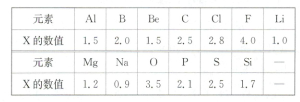 。(2)根据上表给出的数据,简述主族元素$X$的数值大小与元素的金属性或非金属性强弱之间的关系: