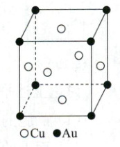 例:已知金属间可以形成合金,金和铜可以形成多种合金晶体。其中一种的晶体结构如图所示(为面心立方结构)。