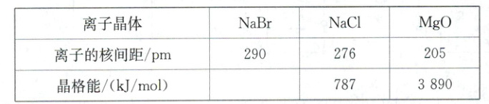 (1) 已知$NaBr$、$NaCl$、$MgO$三种离子晶体的核间距和晶格能如下表所示。
