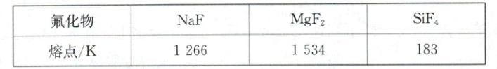 ①因为$NaF$与$MgF_2$为离子晶体,$SiF_4$为分子晶体(见本专题第四单元),所以$NaF$、$MgF_2$的熔点远比$SiF_4$高;