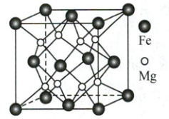 (2) 铁镁合金是目前储氢密度最高的材料之一,其晶胞结构如图所示。储氢时,$H_2$分子位于晶胞体心和棱的中心位置。该合金储满氢后所得晶体的化学式是