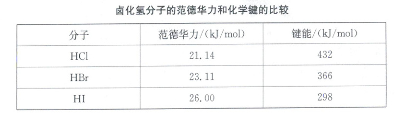 3. 范德华力大小与哪些因素有关?卤素的氢化物的分子间范德华力和分子内的共价键的强弱变化规律是否相同?