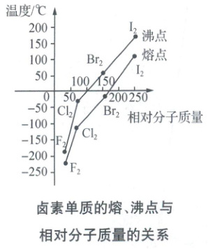 1.随着相对分子质量的增大,范德华力增大,卤素单质的熔、沸点也相应升高。烷烃的熔、沸点随着相对分子质量的增大而增大是因为范德华力随着相对分子质量增大而增大。